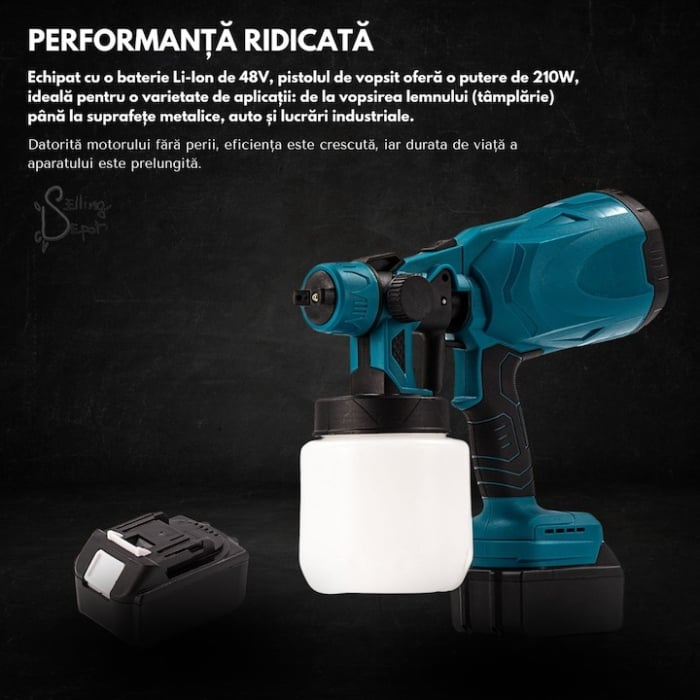 Aparat profesional de vopsit si zugravit AEIDEN ®, electric, cu rezervor de vopsea, 2 acumulatori 36V, portabil