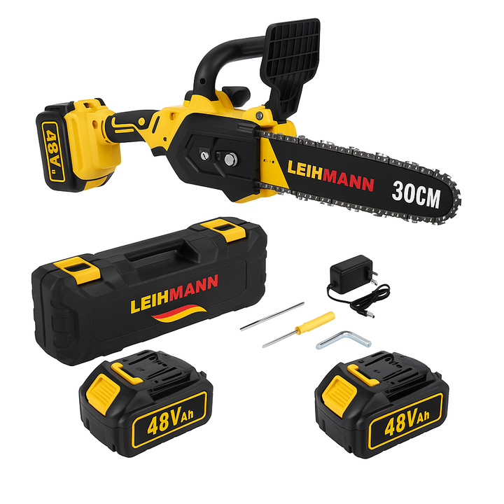 Drujbă electrică LEIHMANN, 12 inch (30 cm), 48V, 2 acumulatori,2 lanțuri, galben/negru