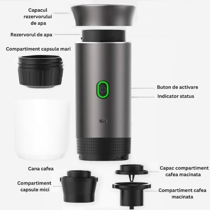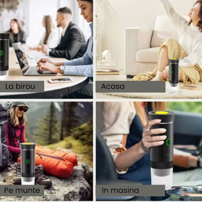 Espressorul portabil este alegerea ideala pentru iubitorii de cafea si stilul lor de viata activ. Fiecare detaliu a fost gandit pentru a aduce o experienta de cafea autentica si memorabila, oriunde si oricand.