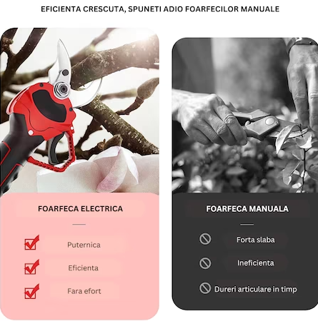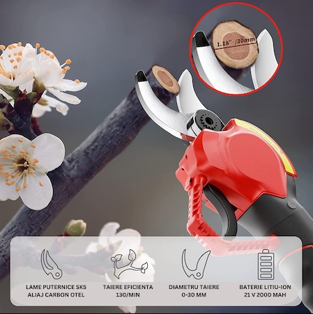 Foarfeca electrica portabila pentru Gradinarit AEIDEN ®, 2 Acumulatori 48V 8.0Ah, 500W, Lama din otel Carbon, baterie 8000mAh, 1 incarcator, design modern, accesorii incluse si valiza de transport, autonomie
