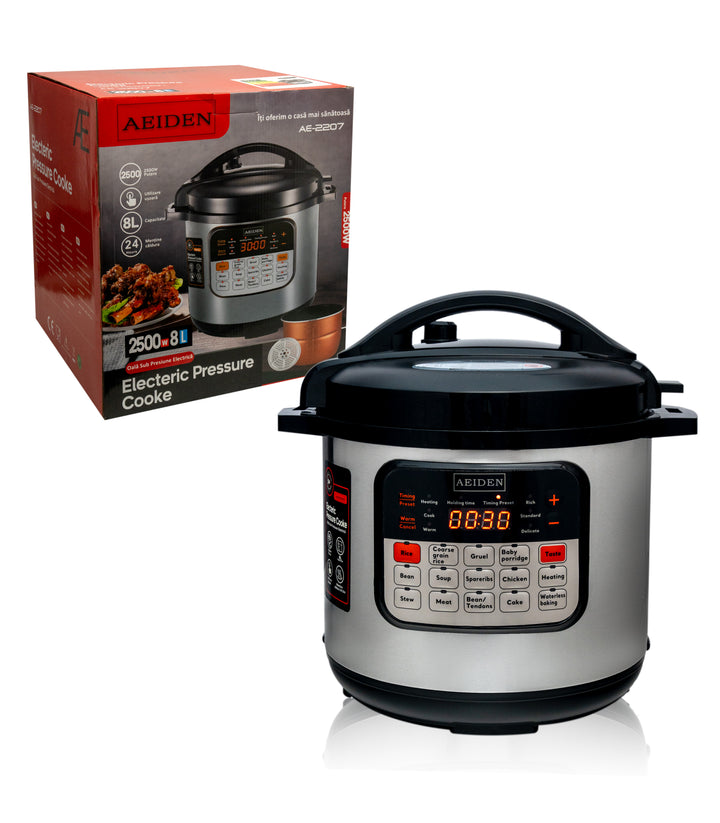 Oală Electrică Sub Presiune AEIDEN® AE-2207 – 8L, 2500W, Multifuncțională & Multiprogramabilă, Oțel Inoxidabil